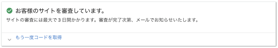 この画面が表示されたら、Googleアドセンス審査の申し込みは完了です。