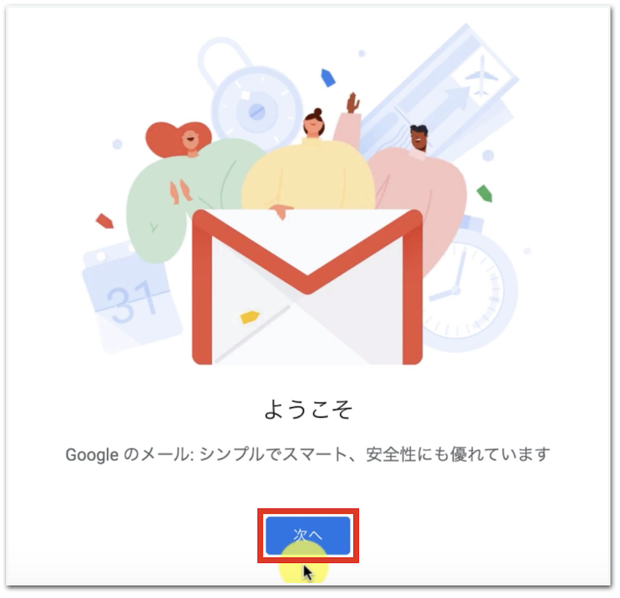 最後に「次へ」をクリックしたら、Gmailの取得は完了です。