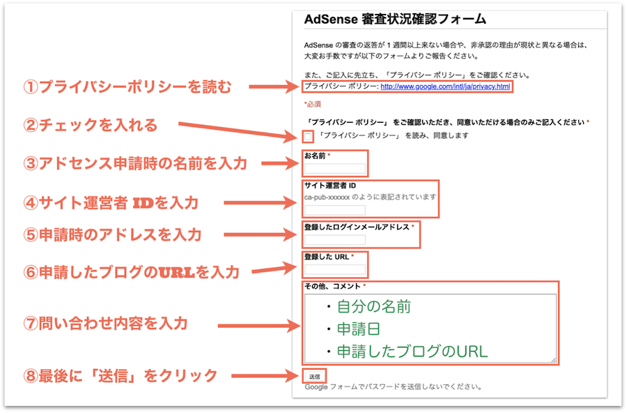 という場合には、『AdSense 審査状況確認フォーム』からお問い合わせすることが可能です。