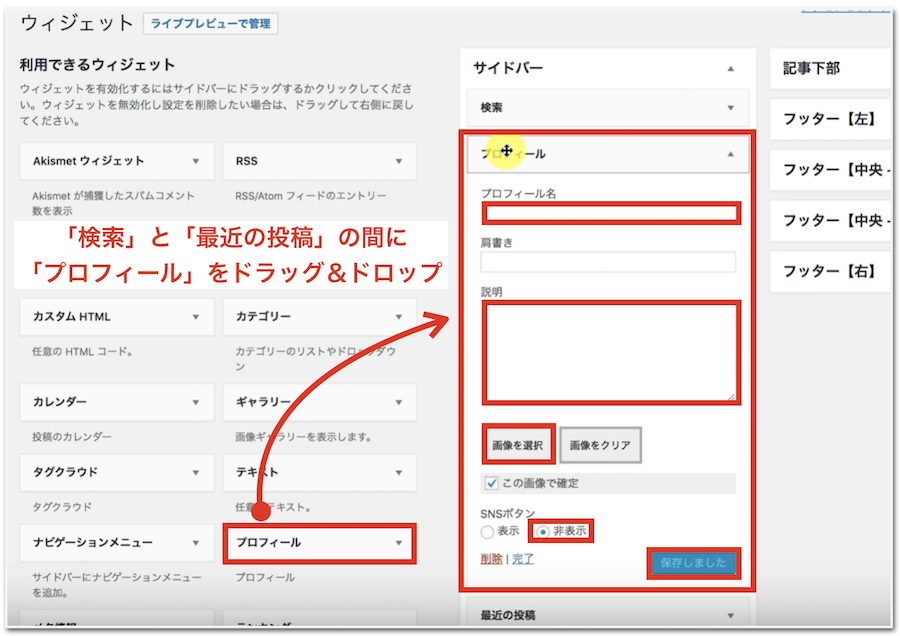 ここまでの設定が出来て『保存』をクリックすれば、プロフィールの設定は完了です。