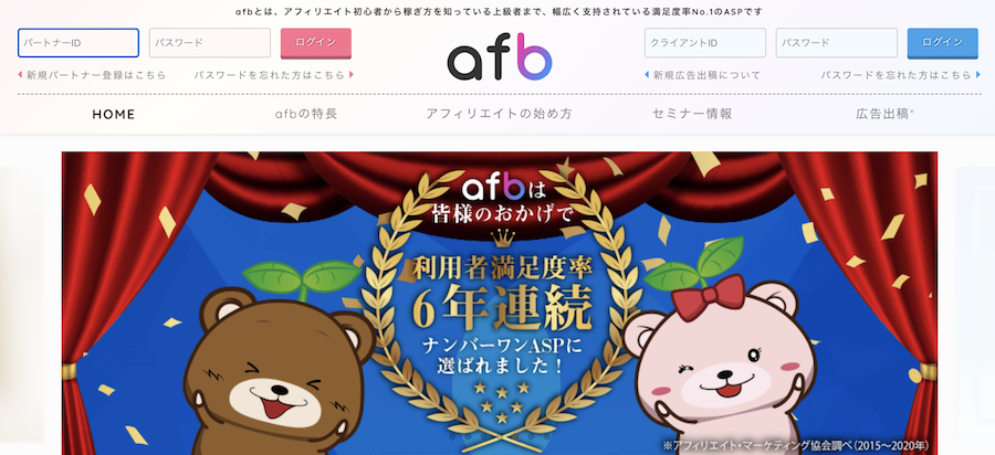 A8.netと同様、afbも登録しておくと良いでしょう。