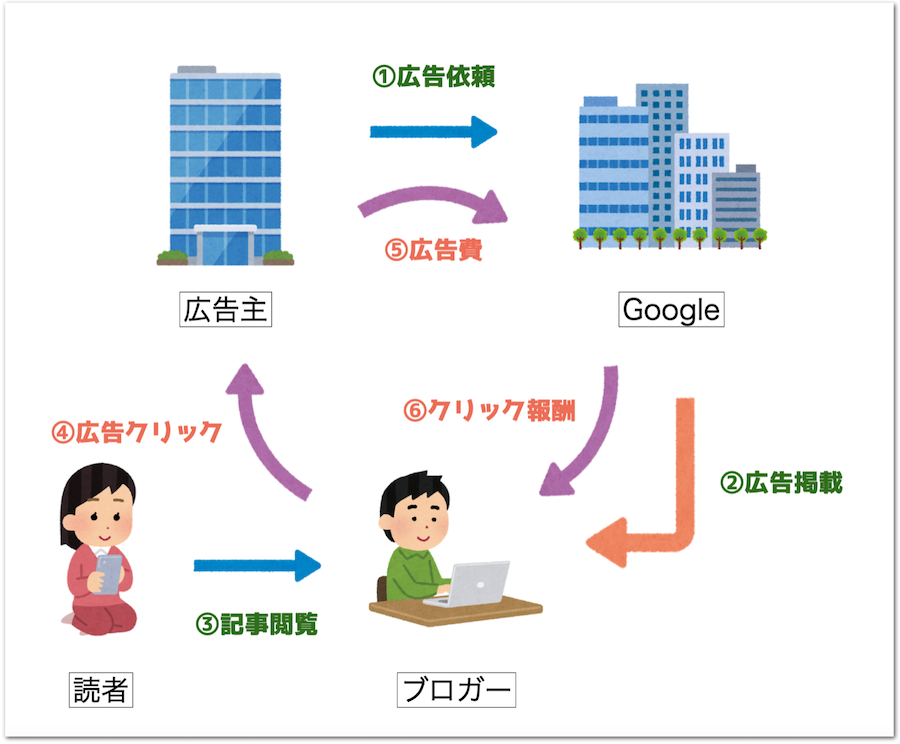 Google AdSenseの場合、以下のような仕組みになっています。