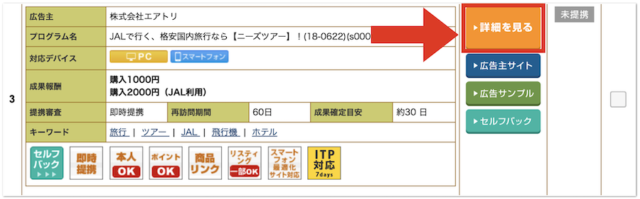 広告掲載したい案件が見つかったら、提携申請をしましょう。
