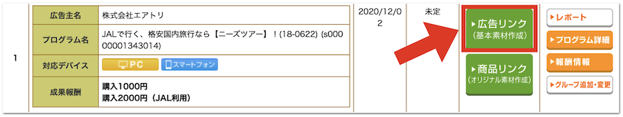 そしたら、「広告リンク(基本素材作成)」をクリックします。