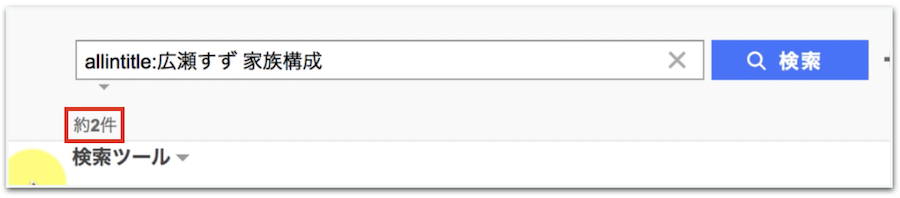 次に「広瀬すず 家族構成」で確認したところ、このキーワードで書いてる記事が約2件でした。