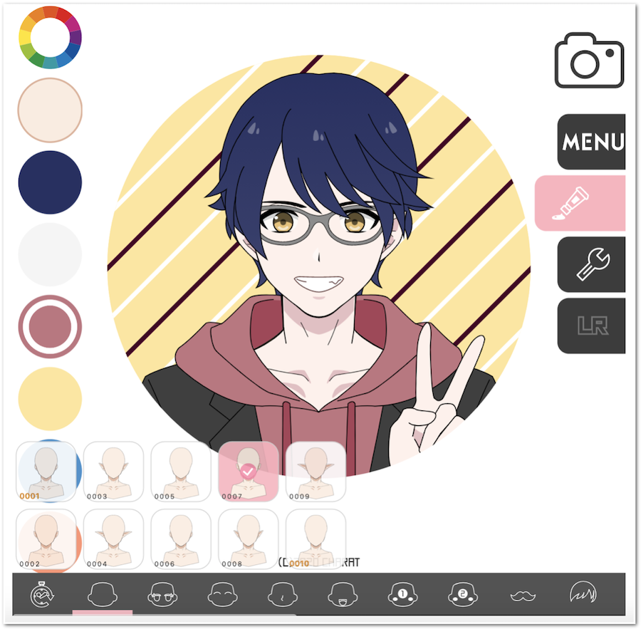 パーツの種類は豊富で、簡単にアニメキャラクターっぽくアイコンを作れるので楽しめます!