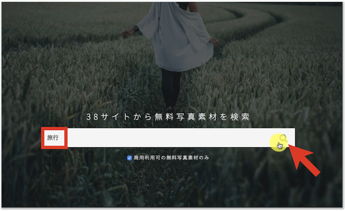 検索窓にマウスを当てて押したときに、「商用利用可の無料写真素材のみ」にチェックが入っていることを確認してください。