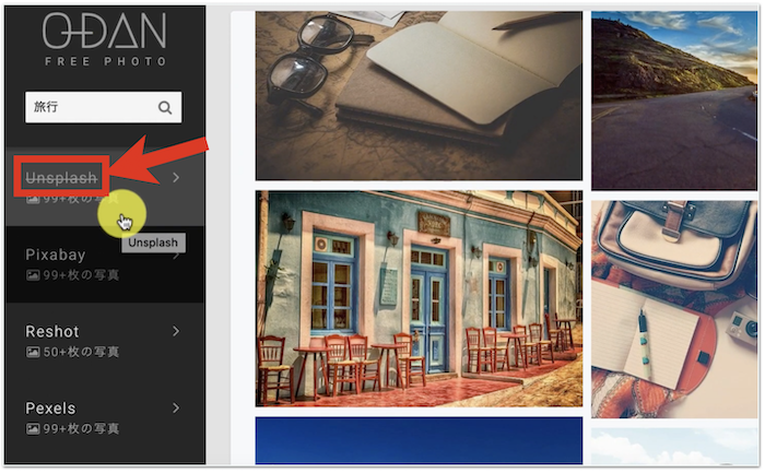 今、赤枠で囲った「Unsplash」に打ち消し線が引かれていますが、これは閲覧済であることを意味しています。