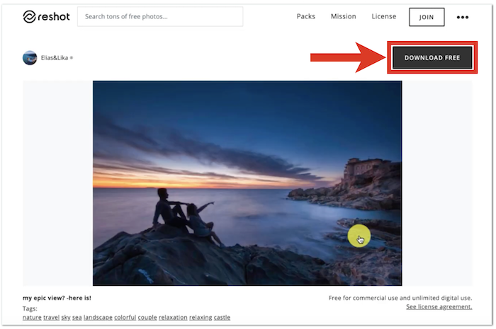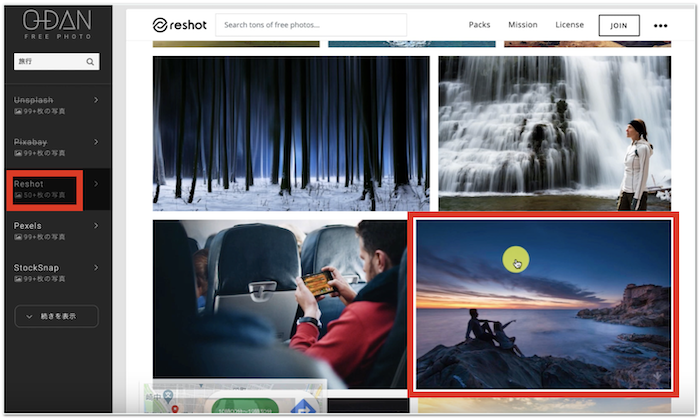 今回は「Reshot」から、お気に入りの画像を探してダウンロードしていきます。