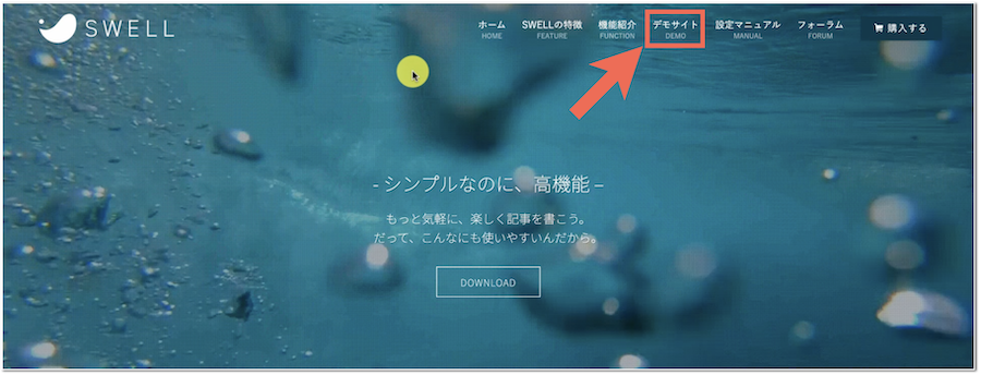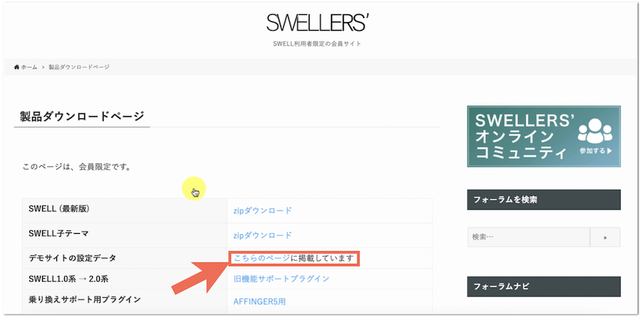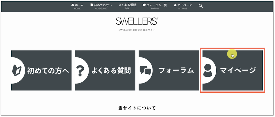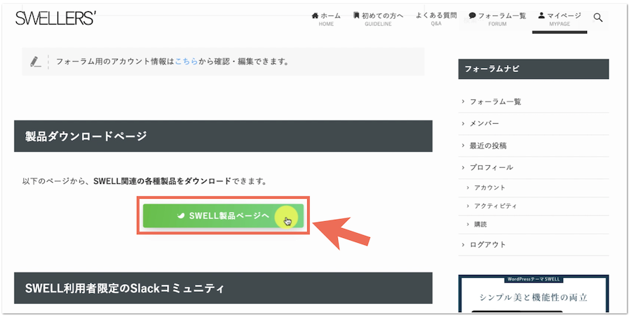 その見出しの中にある『SWELL製品ページへ』のボタンをクリックしてください。