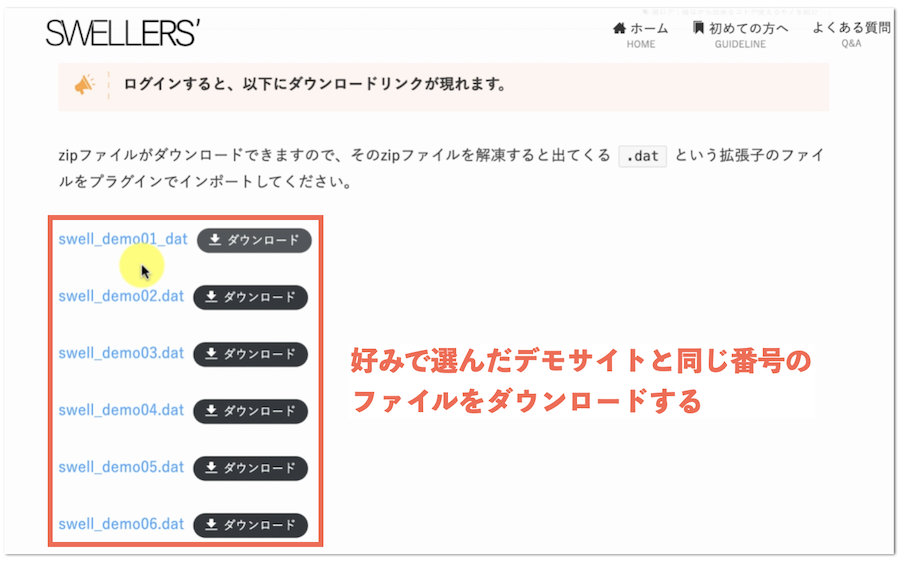 先ほどお好みで選んだデモサイトと同じ番号のファイルをダウンロードしてください。