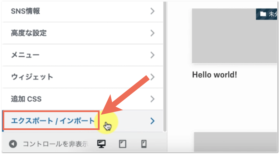 メニューの一番下に『エクスポート/インポート』の項目があります。