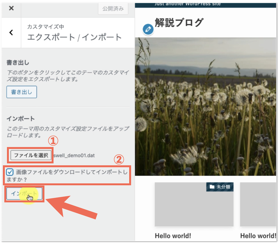 - SWELLのデモサイトと同じデザインに着せ替えする方法