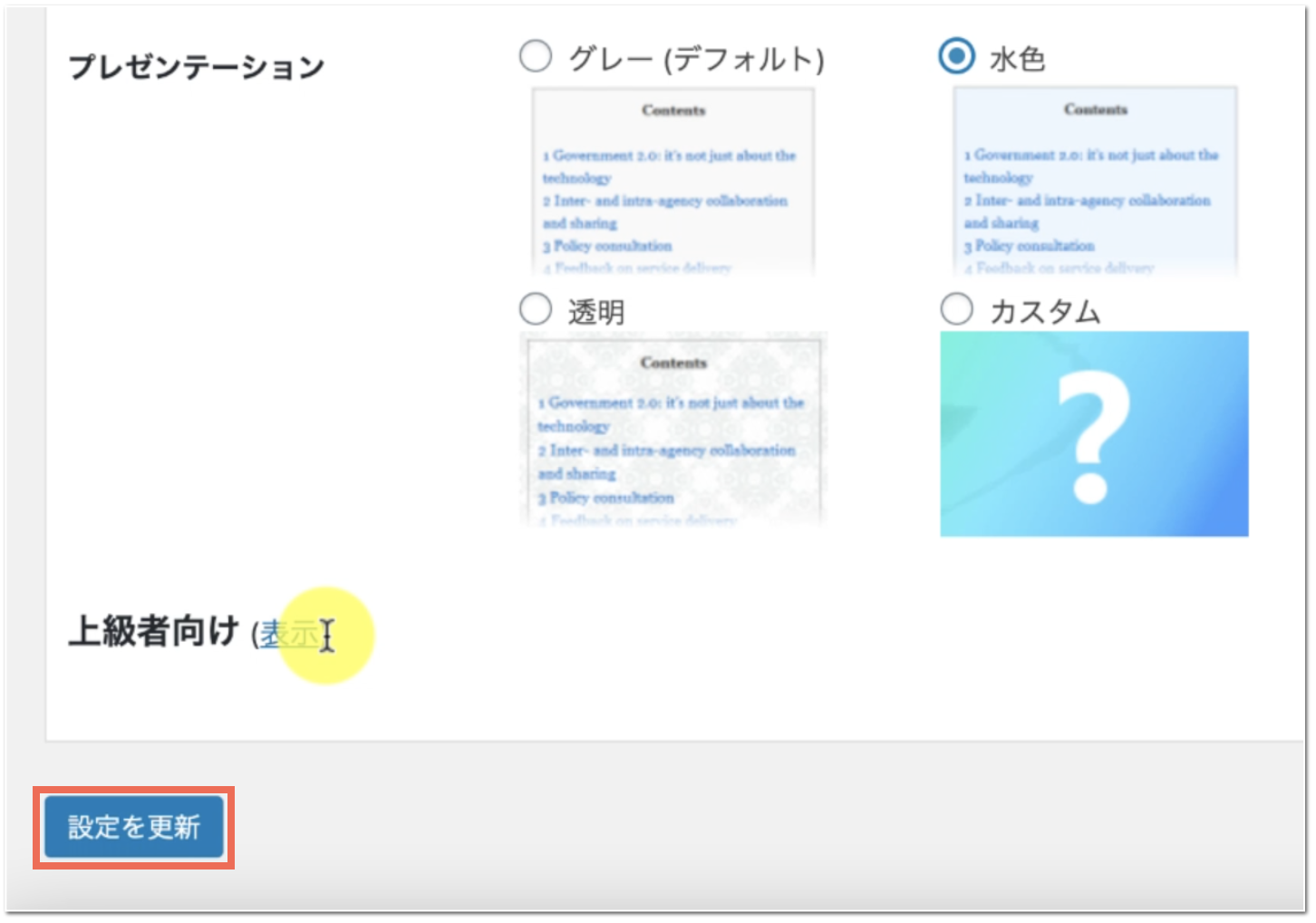 設定を変更したら、『設定を更新』のボタンを押してください。